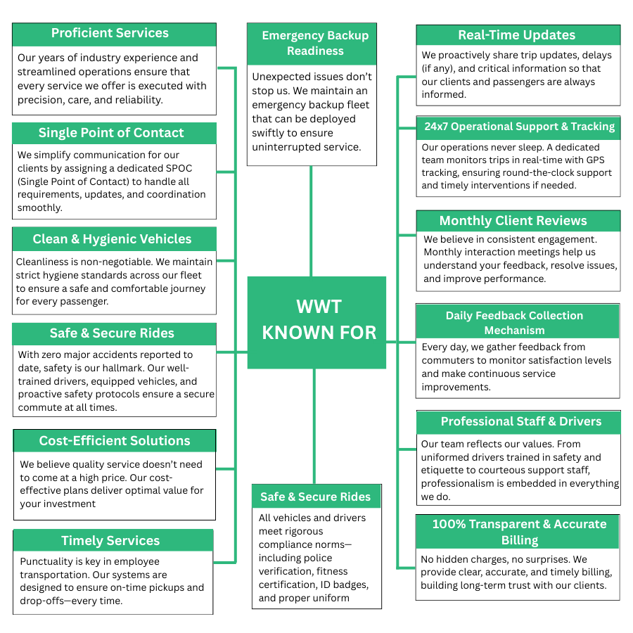 We align our operations to your needs—ensuring smooth coordination with your admin and operations teams, while also ensuring hassle-free commuting for your employees.